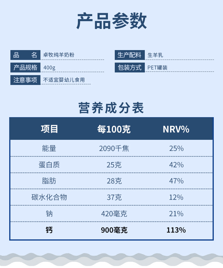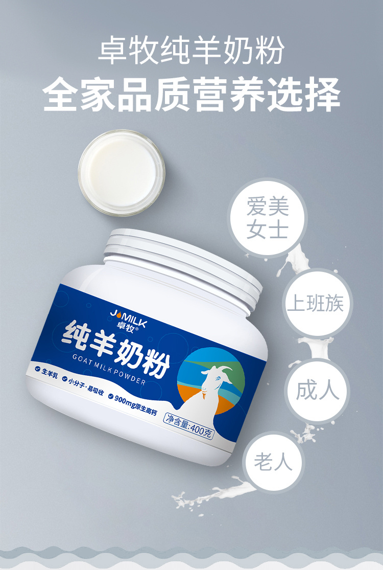 【全家品质营养之选】卓牧纯羊奶粉,牧场直供餐桌,配料表只有生羊乳的纯羊奶粉,鲜奶喷粉,保留最多营养,72小时鲜奶一次成型(400g)
