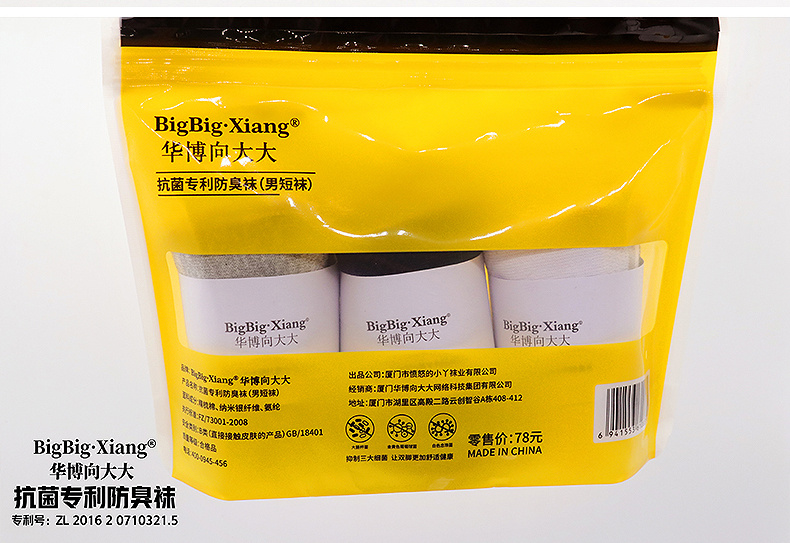 【袋装】华博向大大新款抗菌除臭男款短袜(800VIP)
